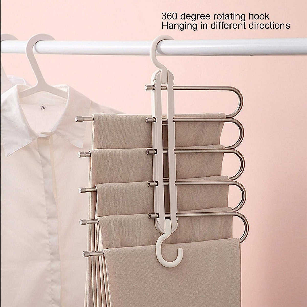 Despídete del desorden en tu armario y mantén tu ropa impecable con estos ganchos multifuncionales tipo S. Con 5 niveles de almacenamiento, te permiten organizar más en menos espacio, manteniendo todo a la vista y sin arrugas.