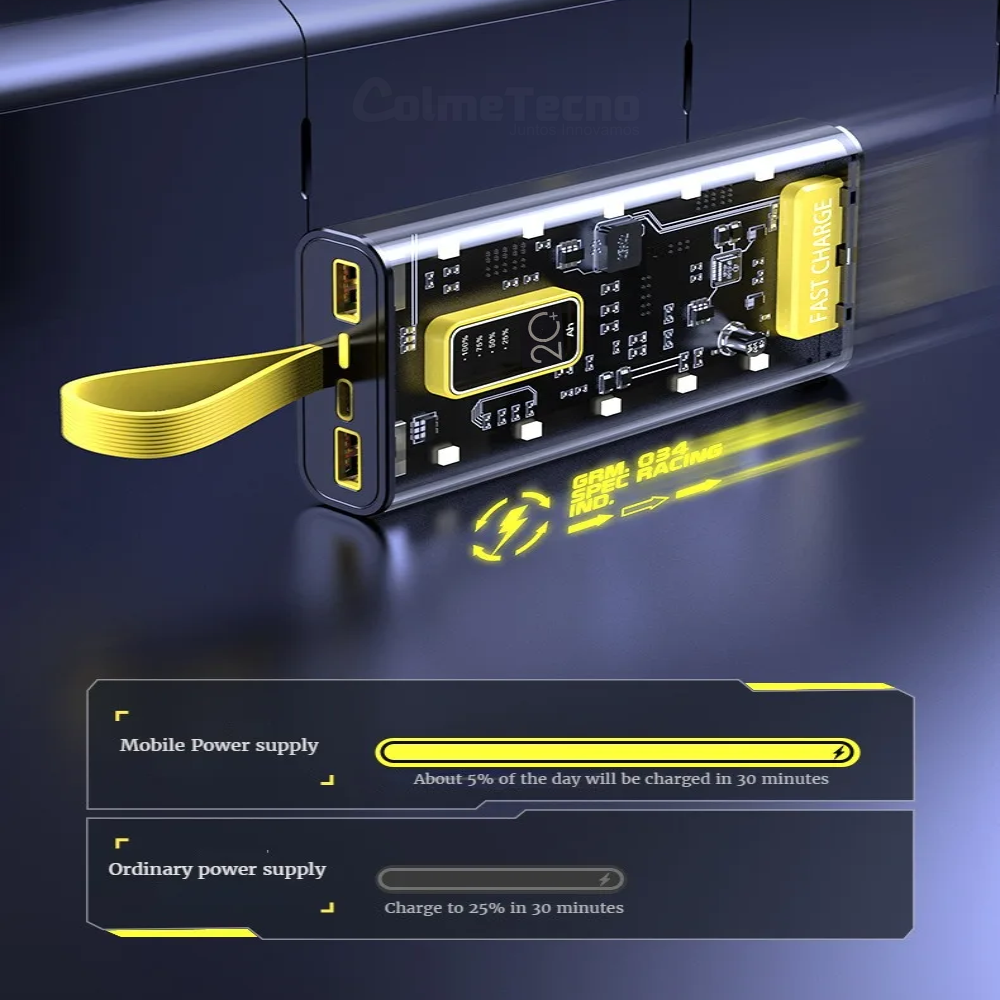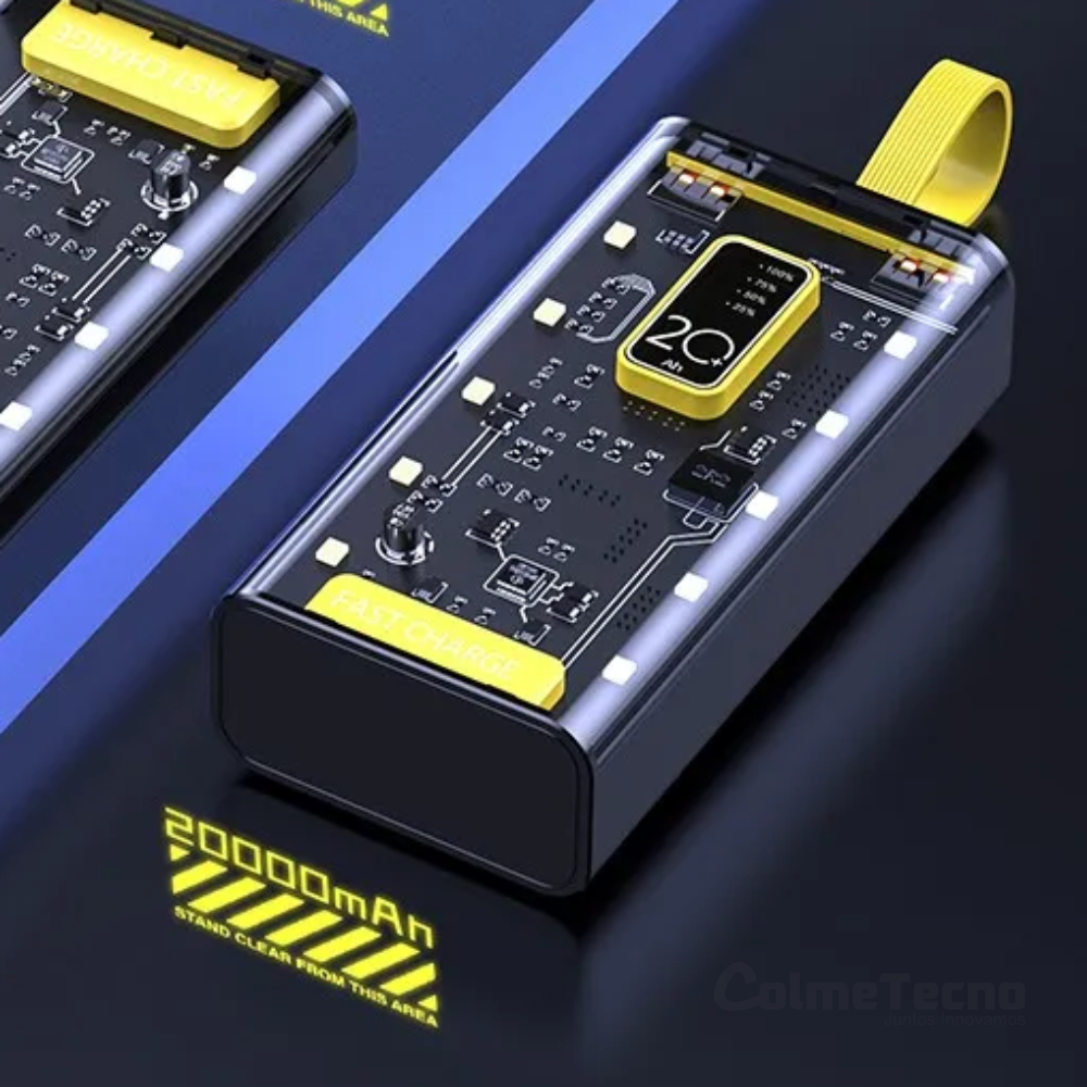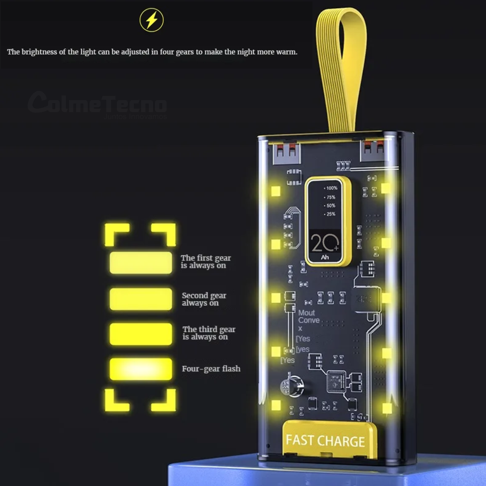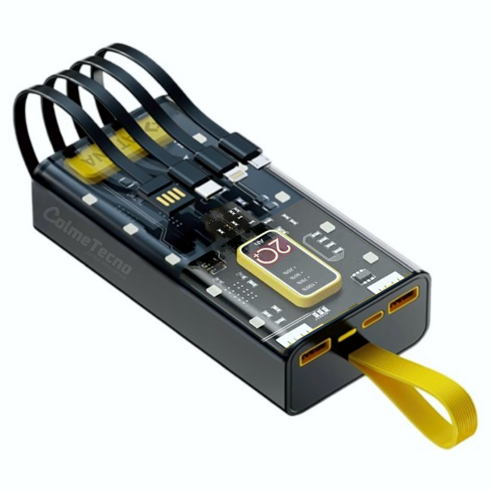 🔋 Power Bank 20000 mAh con Cables Integrados y Diseño Transparente